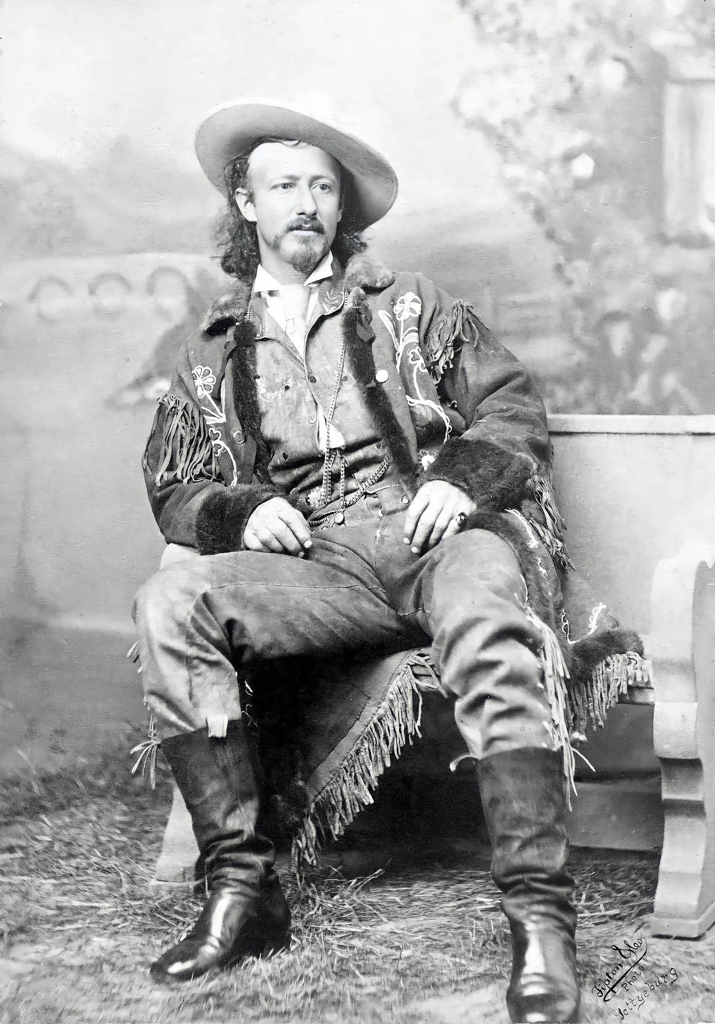 "A man emerges from the bushes ahead. He is a tall, powerfully built man, and as he rode carelessly along, with his long rifle crossed in front of him, he was a picture. He was dressed in a complete suit of buckskin and wore a flaming red neckerchief, a broad sombrero fastened up on one side with a large eagle feather, and a pair of beautifully beaded moccasins. The costume of the man, his self-confident pose, and the quick penetrating glance of his keen black eye, would give the impression that he was no ordinary mountaineer. We meet; Houston recognizes him, it is the world-renowned Rocky Mountain hunter and scout, Texas Jack. While Houston was in conversation with him, our party sat silently staring at him. This is our first sight of the man, whom, above all others, we were anxious to see, and we were in a measure excusable for our seeming impertinence."